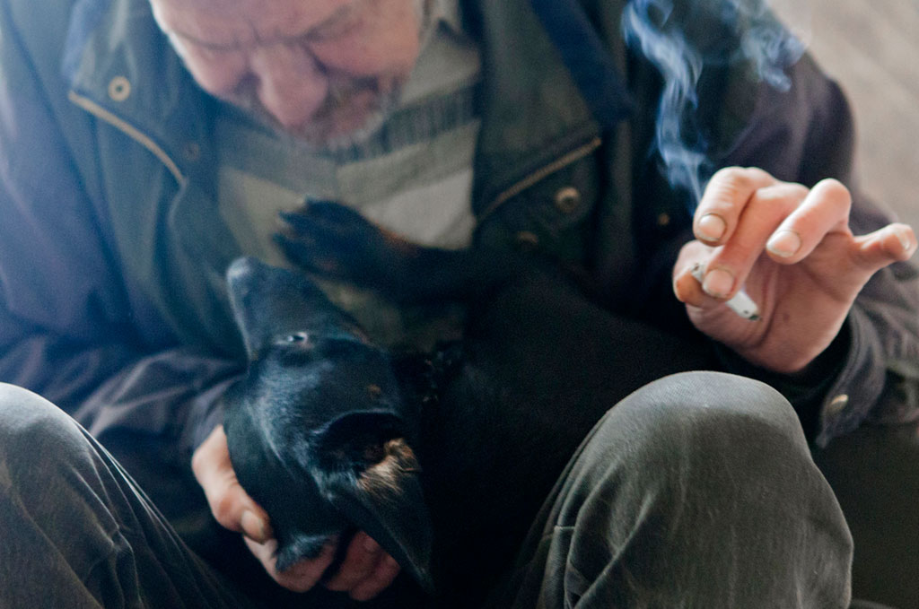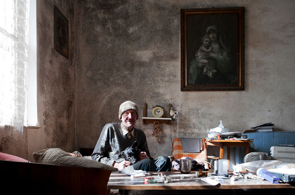 Mr. Adam has not left the house, but continues to live in it with a dog. He gets by collecting scrap metal, and food leftovers found in the nearby dumpsters. His wife and children moved away from him several years ago.