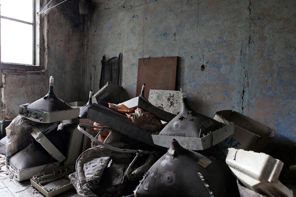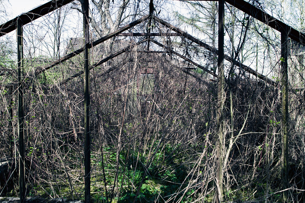 In Krakow, in the proximity of the pre-war villa of Adam, unfolds a view over an apocalyptic landscape. On the one hand, the landscape is dominated by tall chimneys of the coal-fired Łęg Power Station, on the other hand, by gentle ridges of debris and a yard used for demolition of demolished houses, in which metal building structures are separated from concrete parts.